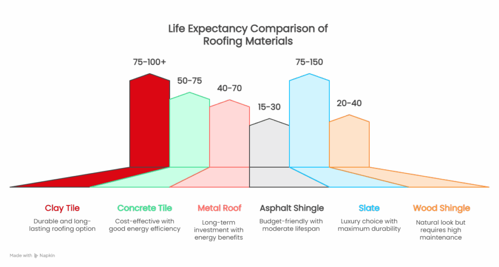 Concrete roof tiles offer outstanding durability and performance at a more accessible price point. Modern manufacturing techniques create tiles that rival clay performance while reducing overall project cost.